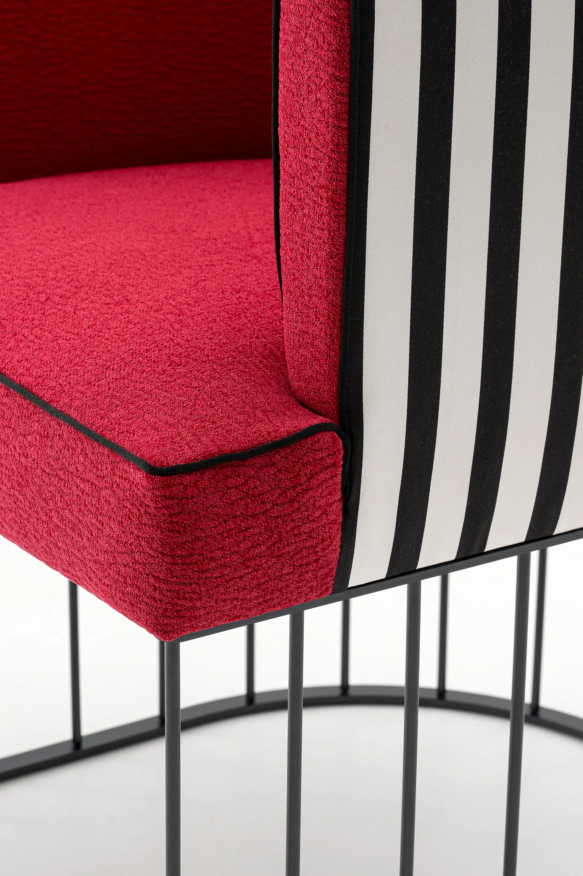 Its graphic, rhythmic silhouette breaks away from the predictability of the classic dining chair, highlighted by the elegant vertical metal rods that trace its outline.