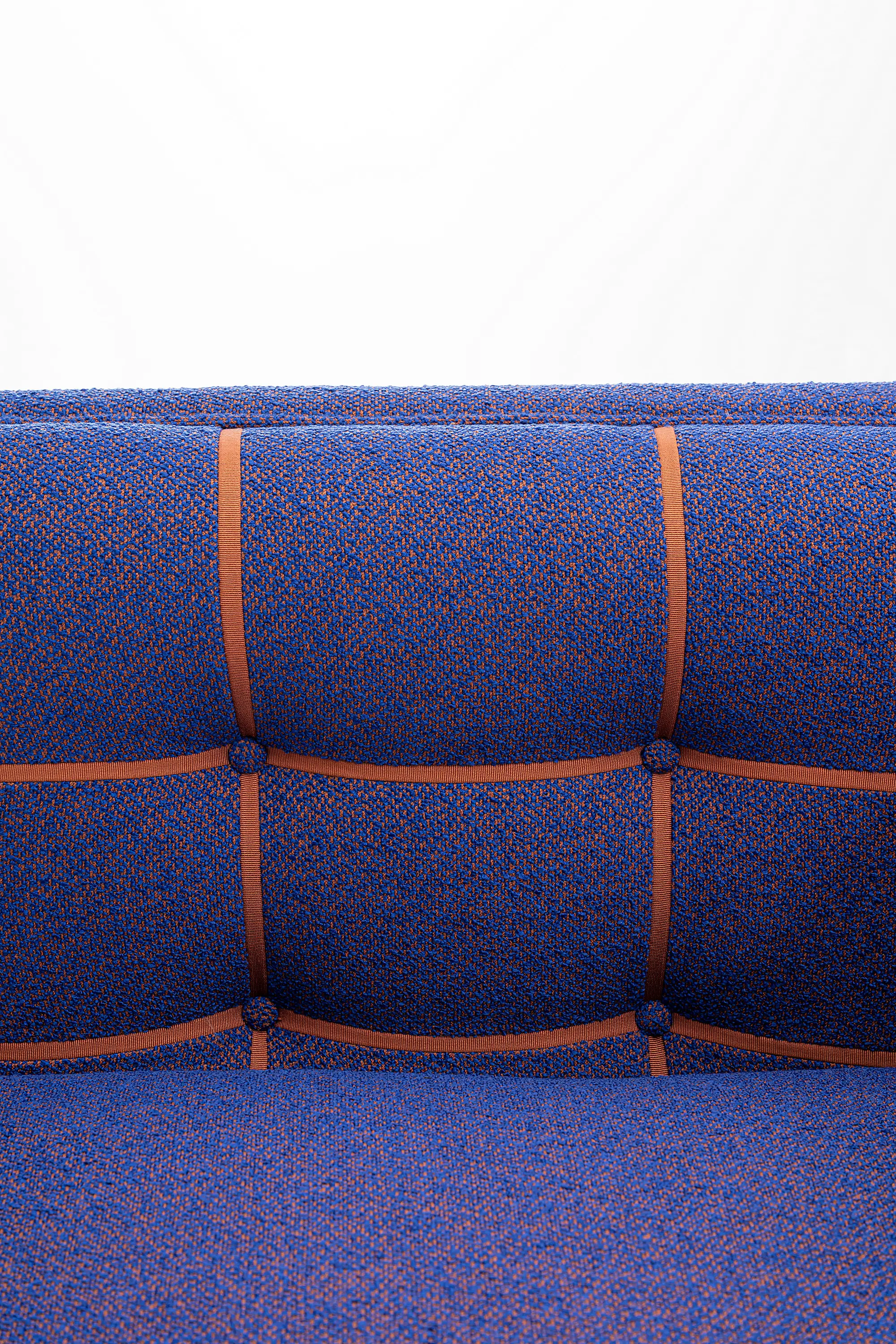 The structure combines solid wood and plywood with an elastic webbing suspension system, upholstered in non-deformable polyurethane foam and polyester fiber. Comfort reaches its peak in the seat, where the softness of virgin goose down envelops a polyurethane core, ensuring impeccable support.