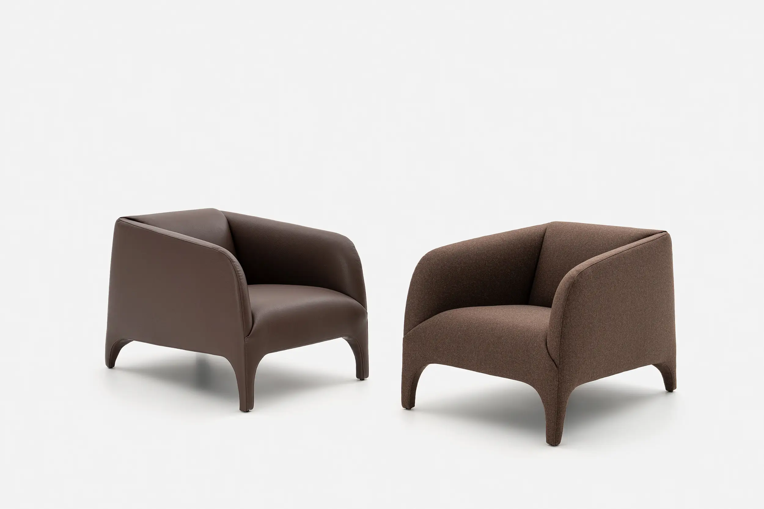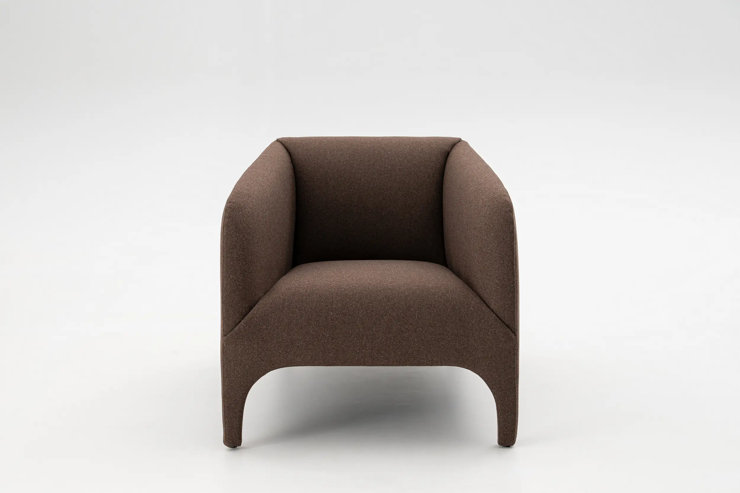 Beneath this visual fluidity lies a solid wood and plywood frame, supported by an elastic webbing suspension system. Every curve is designed for comfort, with the seat and backrest crafted from shape-retaining polyurethane foam at differentiated densities and softly wrapped in polyester fiber.