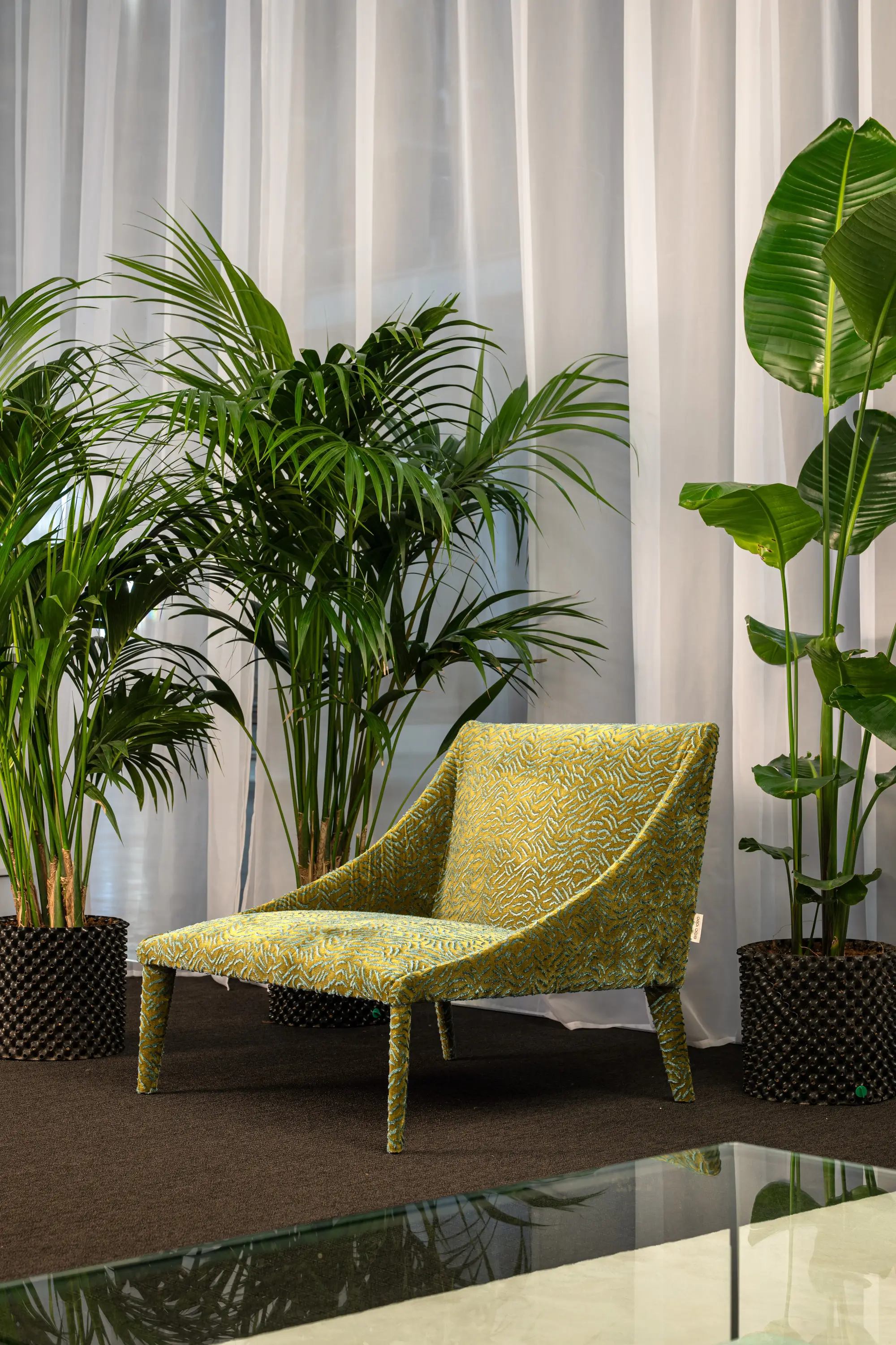 Petalo Lounge dominates the room with a bold, architectural silhouette. Its sharp, sculptural lines retain the strong character of the dining chair, yet here they break free from the table to occupy the space with greater freedom and impact.