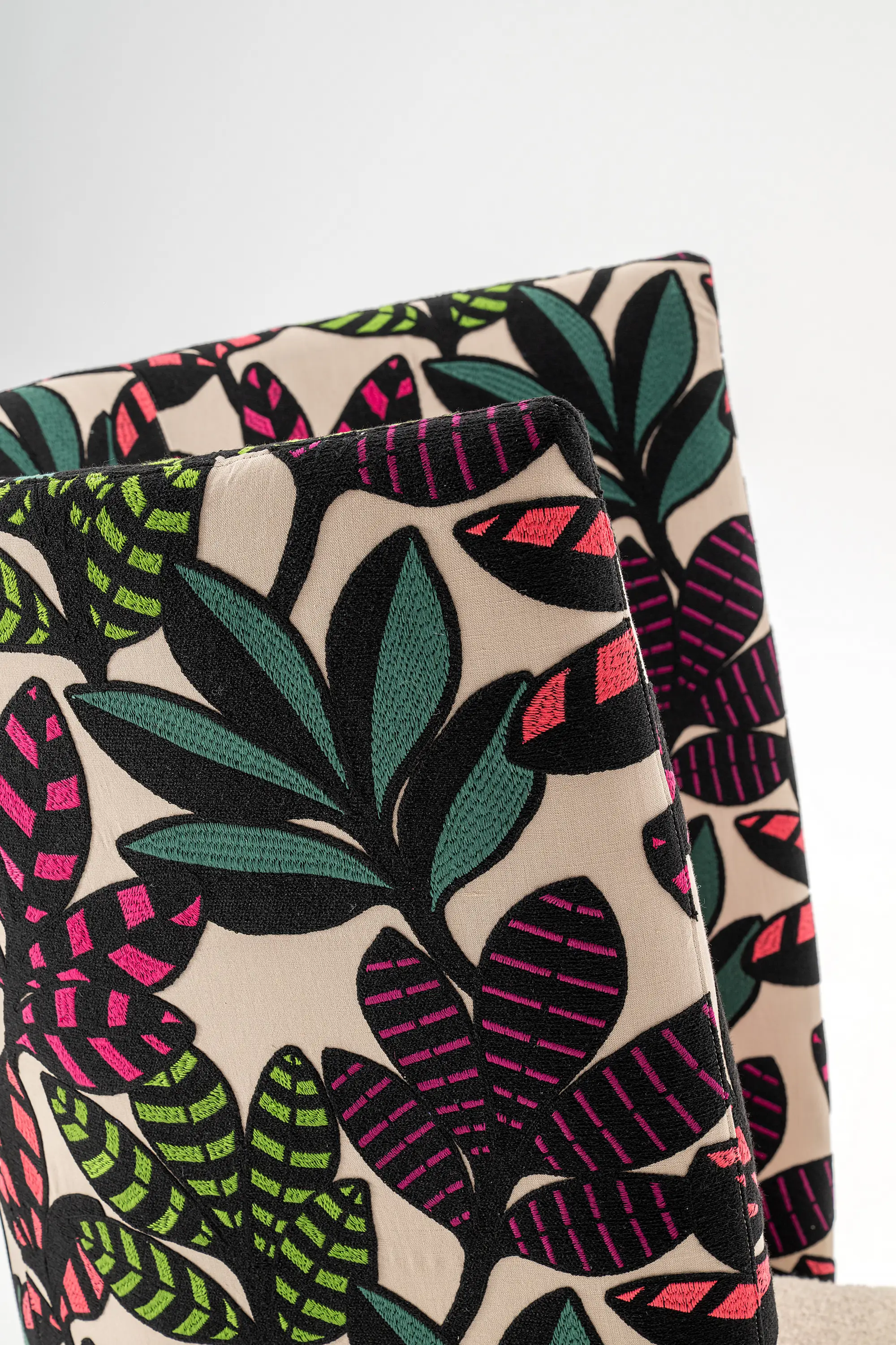 Beneath this clean silhouette, suspended on concealed feet, lies a technical steel frame featuring an elastic webbing suspension system. The structural padding, made of shape-retaining polyurethane foam, accommodates a seat luxuriously filled with virgin goose down and a natural down backrest, ensuring a perfect balance between solidity and absolute softness.